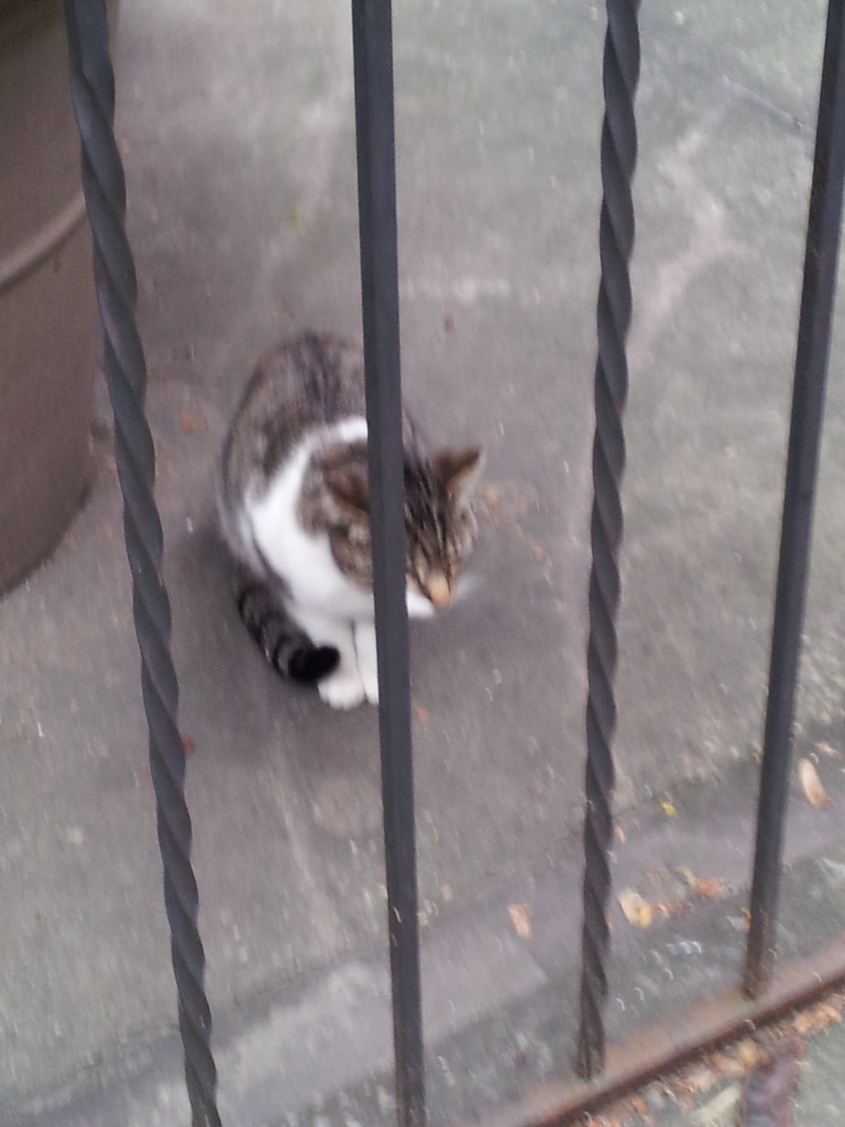 She also sent me a picture of a cute little cat she ran into in Park Slope on Union Street. She said it stood behind the gate as she passed by and looked like she was either a well-trained house cat or a very territorial stray. I would like to think she is the former.